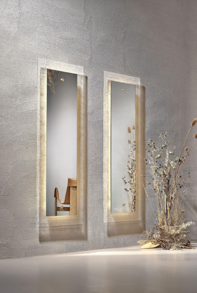 The essential and linear shapes of the Eclipse mirror are framed and embellished by the characteristic terracotta glass frame. The perimeter LED light, once turned on, creates a magical play of lights and reflections that adds elegance to the environment and creates a unique and mysterious atmosphere. This mirror is not only functional, but it is also an attention-grabbing design element that transforms the space in which it is placed.