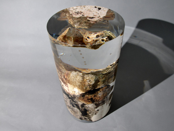 Karst Stone, Extraclear Polished RESIN. Natural stone not covered by resin on the section planes.