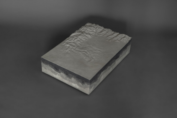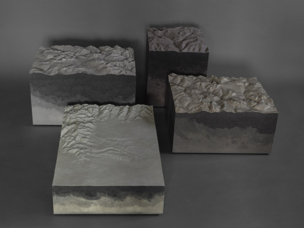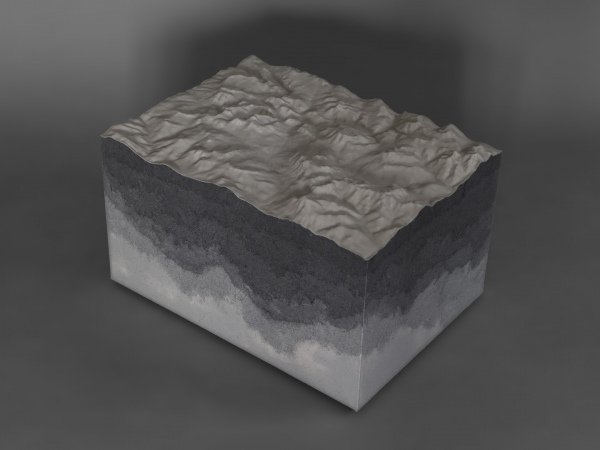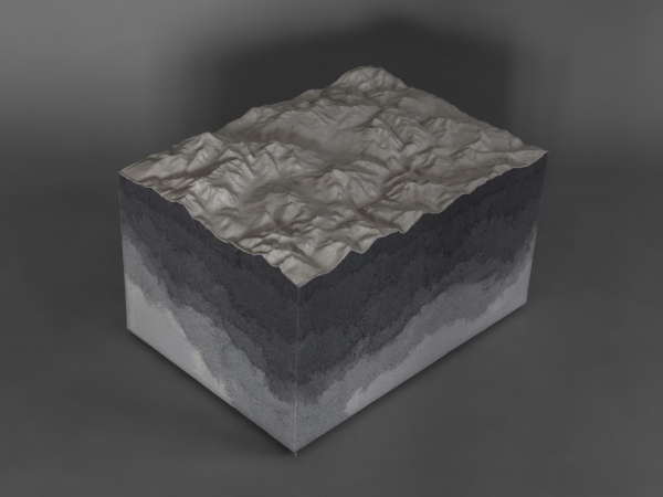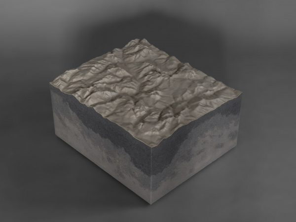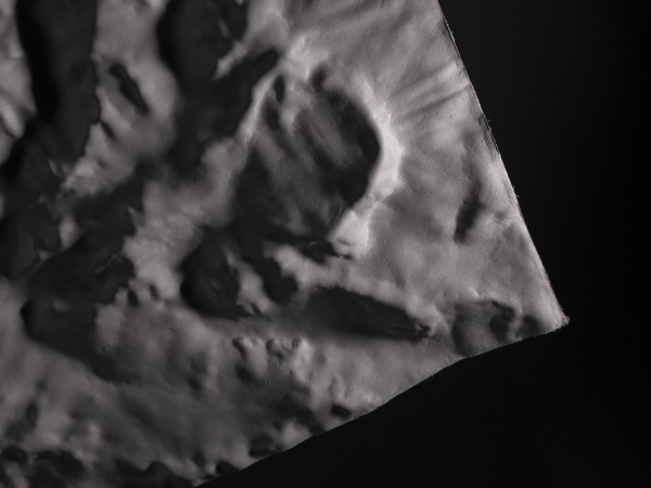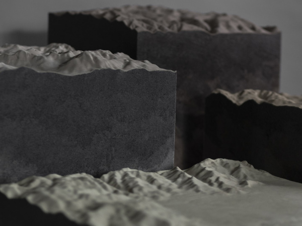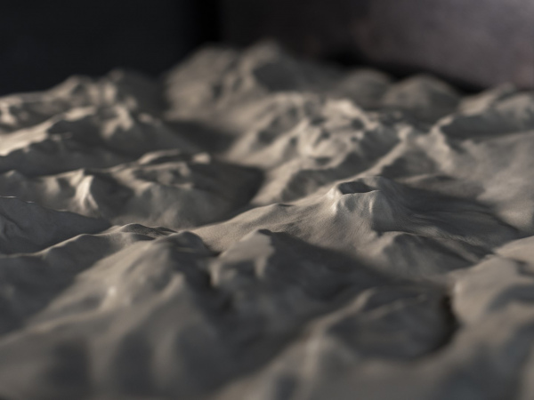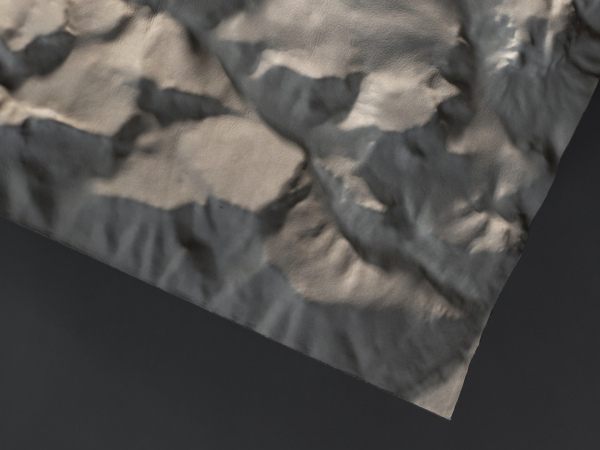The shapes of the reliefs derive from three-dimensional files of some areas of the Italian Alps, made more abstract and mixed with other planetary geologies.