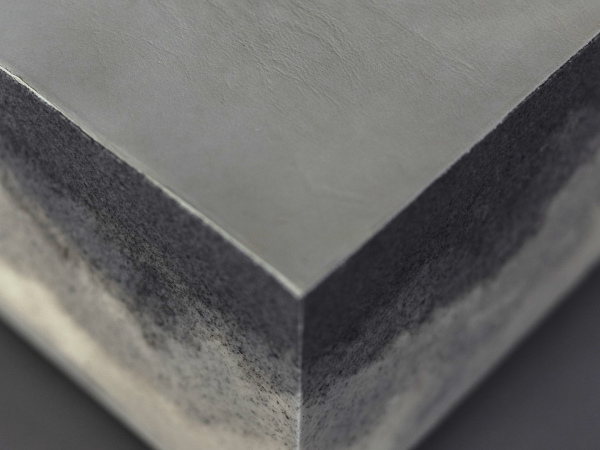 The vertical sides are an abstract representation of typical geological stratigraphies of the solar system planets, where the top surface is soft Nubuck genuine leather, the lower part is recycled soft polyurethane foam, covered with a thin layer of soft rubber mixed with stone powder and real soils which make the colors and textures always unique and completely organic.