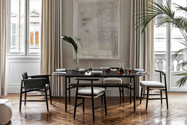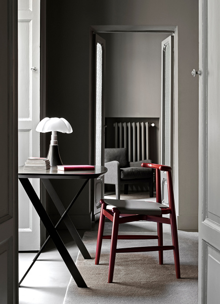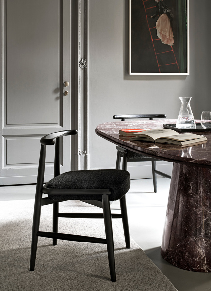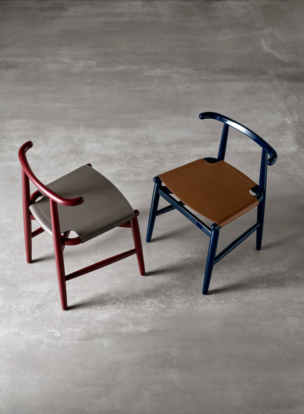 A well-defined and visually light appeal characterize the Emilia chair; this collection stands out for its small sized and well-balanced proportions and its essential solid wood structure, whose warmth perfectly combines with the soft, rounded shapes. More contemporary in the wooden version, it becomes more elegant and refined in the glossy or matt lacquered versions expressing the brand’s eclecticism. For the Emilia chair two different kinds of seats are available: an upholstered version with textile or leather cover; a second version in saddle-leather for a more decided, rigorous look.