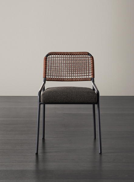 Tai is a collection of chairs characterized by the unique match of different materials. The protagonist is saddle leather, wisely worked to give life to a backrest with sartorial stitchings or with hand-woven saddle leather rope. The metal frame has four available colours for very creative combinations.