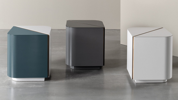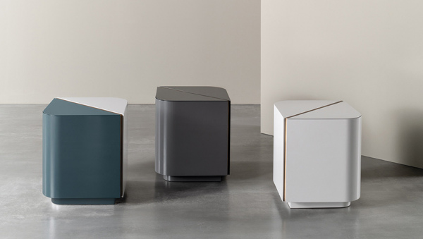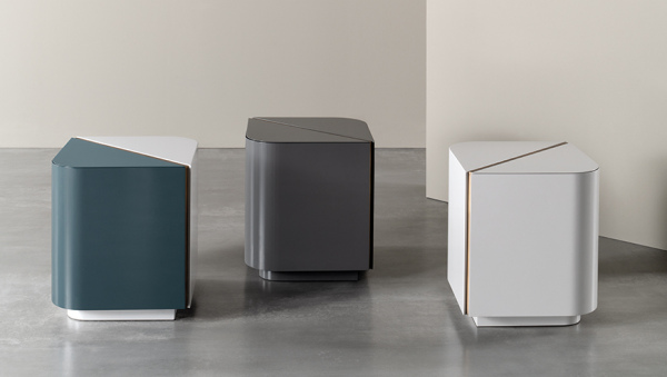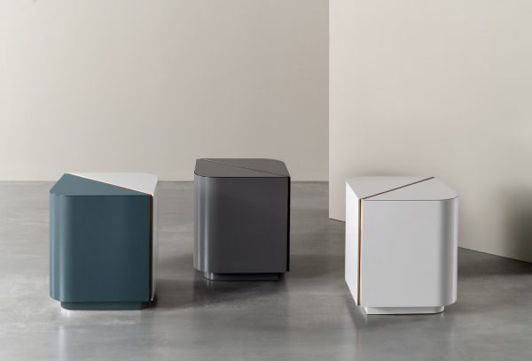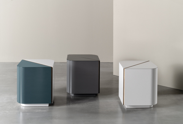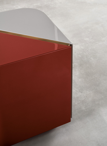 A collection of quadrangular night stands characterized by their rounded edges as well as by their aesthetic appeal - also duotone. The insertions are featured by the warm and contemporary reflections of the bronzed brass and of the platinum steel.