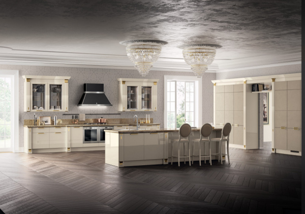 Exclusiva, design by Vuesse, was conceived as a topof- the-range offering: classically-inspired bespoke details that together form a kitchen design capable of appealing to the demanding market of international luxury.