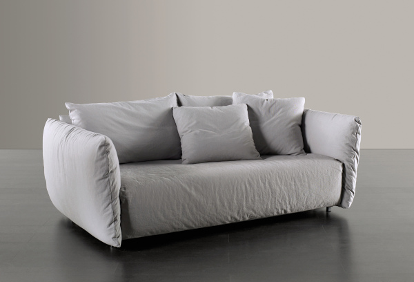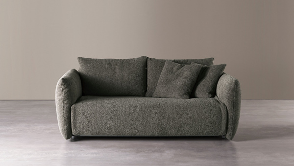 Sofa-bed with generous proportions: a perfect day-night solution. Its back cushions become comfortable pillows, while the seating depth can be shortened thanks to the decorative cushions. A versatile furniture element: the mattress provides maximum comfort for sleep, without compromising the seating comfort.