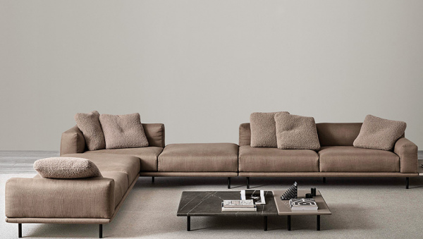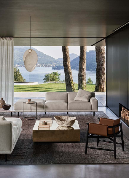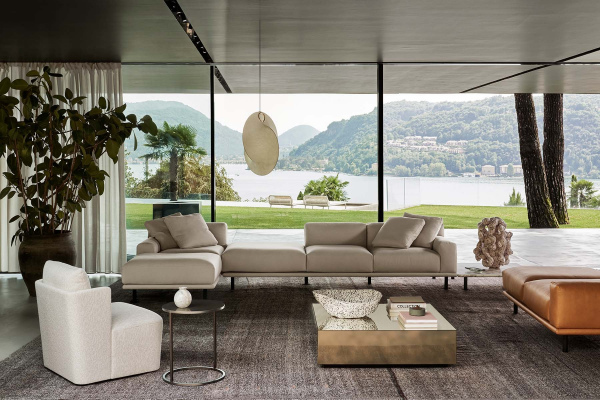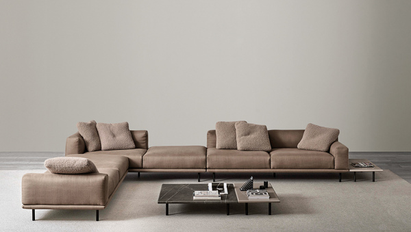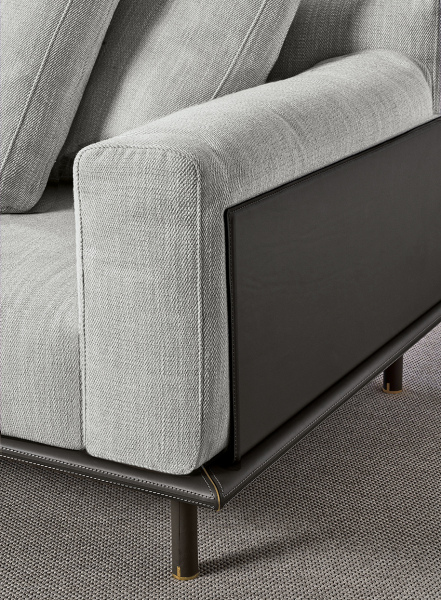 Free-standing sofas and modular elements characterized by geometric shapes and elegant proportions, enriched by sophisticated metal details. Timothy is also available in the version with saddle leather frame for a more urban look. A flexible and complete collection, its multiple elements allow the utmost versatility of configurations. Further to the seating system, the range also includes a low table and a storage item.